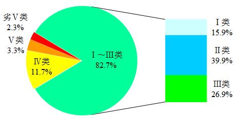 圖1  2021年1月全國地表水水質類別比例
