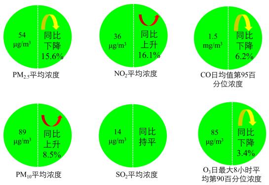 2021年1月,全國339個地級及以上城市平均優良天數比例為74.7%,同比上升5.2個百分點;PM2.5濃度為54微克/立方米,同比下降15.6%;PM10濃度為89微克/立方米,同比上升8.5%;O3濃度為85微克/立方米,同比下降3.4%;SO2濃度為14微克/立方米,同比持平;NO2濃度為36微克/立方米,同比上升16.1%;CO濃度為1.5毫克/立方米,同比下降6.2%。